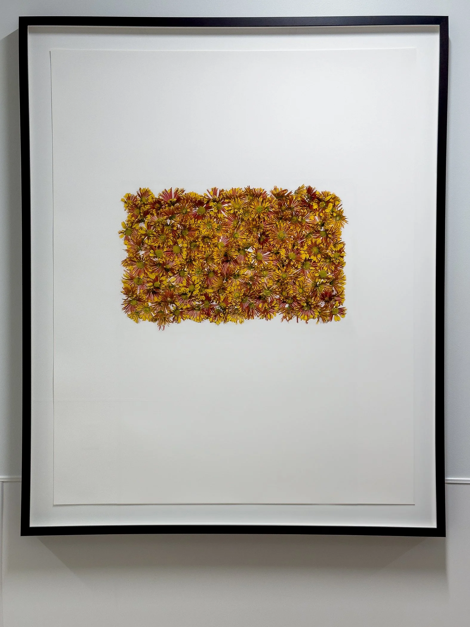 “This work began by picking up discarded branches and blossoms left from tree pruning that I came across during my daily neighborhood walks. As the seasons changed, I switched to collecting twigs when walking in parks or hiking in the woods. In my studio, these natural materials are arranged then photographed. Often they loosely form rectangular shapes as I welcome unexpected surprises. I like to contrast the material's fragile and temporal elements with the sense of solidity and permanence a geometric form offers.” -yk